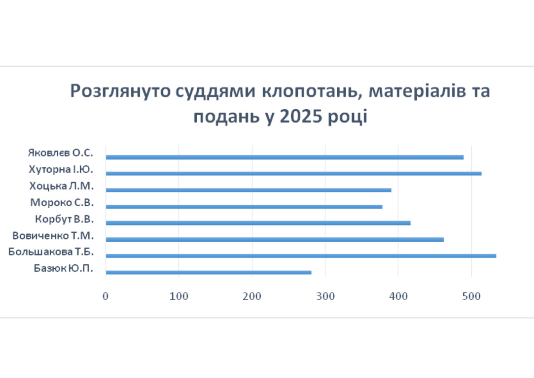 В 2025 році кожним суддею розглянуто наступну кількість справ та матеріалів: