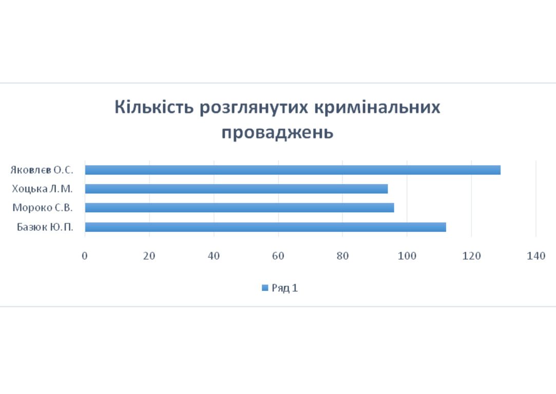 За вказаний період кожним суддею розглянуто наступну кількість кримінальних проваджень: