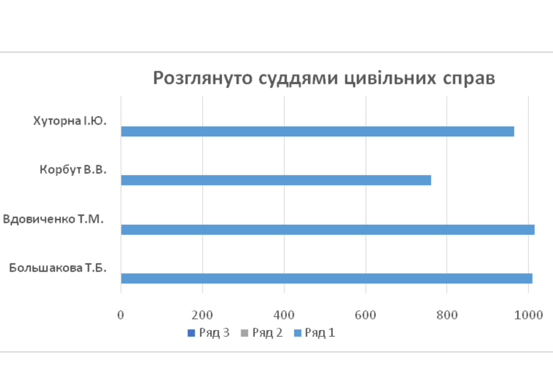 В звітному періоді кожним суддею розглянуто наступну кількість цивільних справ та матеріалів: