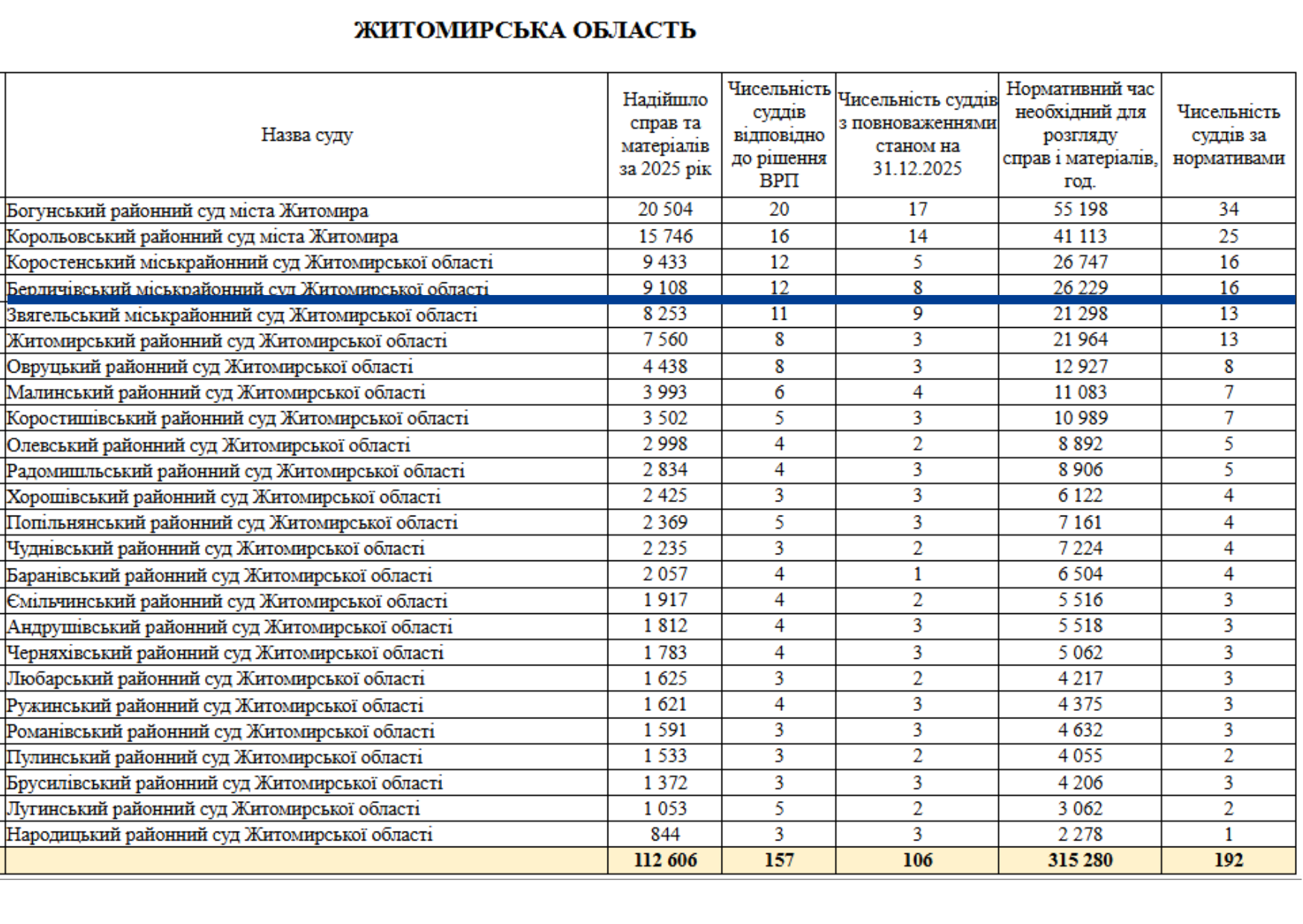 На сайті Ради суддів України оновлено інтерактивну карту судів України з розрахунками нормативів навантаження на суди та суддів з урахуванням кількості справ, які розглядаються судами впродовж 2025 року.