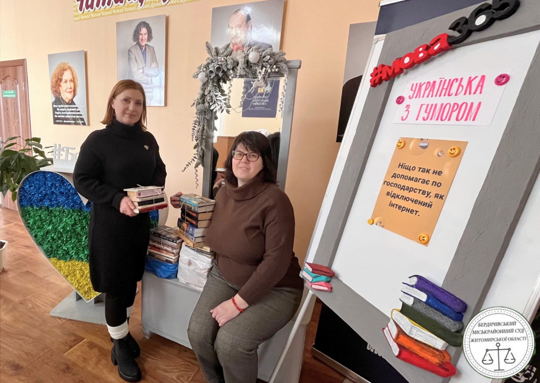 Колектив Бердичівського суду долучився до відзначення Міжнародного дня дарування книг, організувавши збір літератури для місцевої бібліотеки. Цьогоріч судді та працівники апарату суду відібрали зі своїх книжкових полиць та передали книгозбірні пів сотні примірників різного спрямування. Підбірка книг доволі строката: поруч із сучасною літературою є й примірники, що вже застаріли фізично або не відповідають вимогам часу ідеологічно. Втім, кожна з цих книг принесе користь. Як зазначила директорка Публічної бібліотеки з філіями Бердичівської ТГ Тетяна Кущук, частину отриманих видань занесуть до основного фонду для користування читачів, решту книг, які не підлягають подальшому зберіганню, віддадуть на макулатуру. Виручені за переробку кошти бібліотека спрямує на оновлення асортименту та придбання актуальних книжкових новинок.